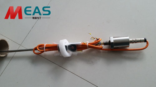 2、在測量過程是由位移傳感器的電子室內(nèi)產(chǎn)生電流脈沖,該電流脈沖在波導(dǎo)管內(nèi)傳輸,從而在波導(dǎo)管外產(chǎn)生一個圓周磁場,當(dāng)該磁場和套在波導(dǎo)管上作為位置變化的活動磁環(huán)產(chǎn)生的磁場相交時,由于磁致伸縮的作用,波導(dǎo)管內(nèi)會產(chǎn)生一個應(yīng)變機械波脈沖信號,這個應(yīng)變機械波脈沖信號以固定的聲音速度傳輸,并很快被電子室所檢測到。